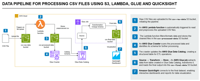 Data Pipeline for Processing CSV Files Using S3, Lambda, Glue, and QuickSight