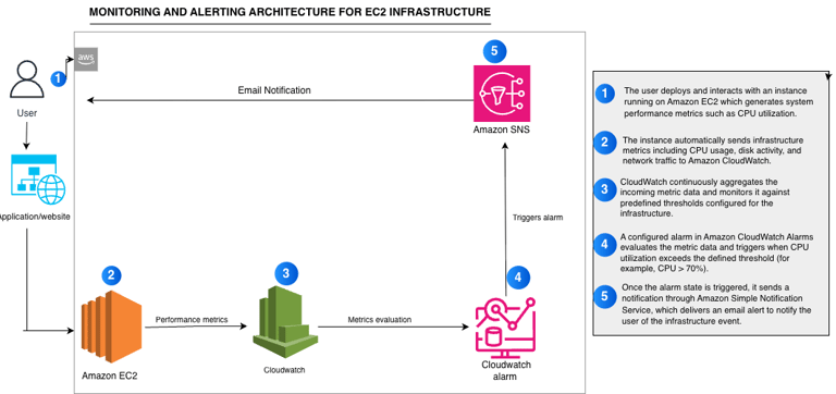 Objective: Monitor EC2 infrastructure and receive real-time alerts for system events.