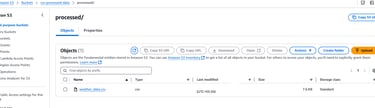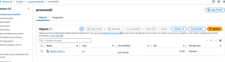 Uploads the Processed File – Finally, the function saves the cleaned file into a different S3 bucket (csv-processed-data).
