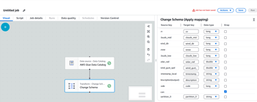 Click the + button after the source block and choose Change Schema for basic transformations.