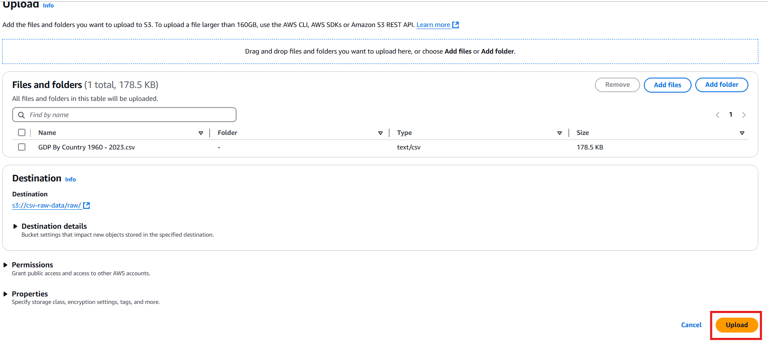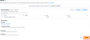 Go to the S3 Console and navigate to your csv-raw-data bucket.