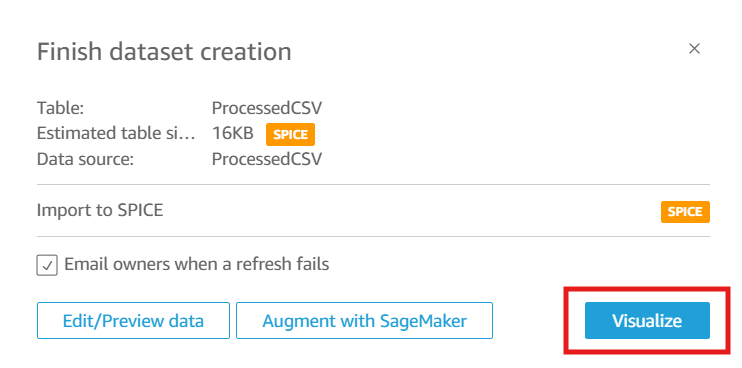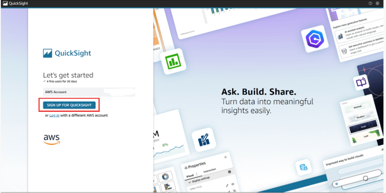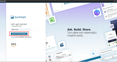 Amazon QuickSight helps you visualize your processed data. Let’s setup your QuickSight account: