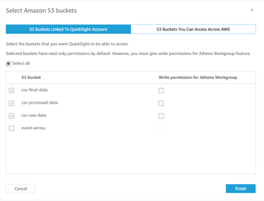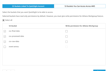 Locate and select the bucket where the transformed data is stored (e.g., csv-final-data).