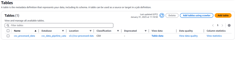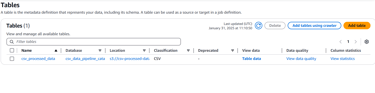 Under the table, choose the csv_processed_data table created by the Crawler job.
