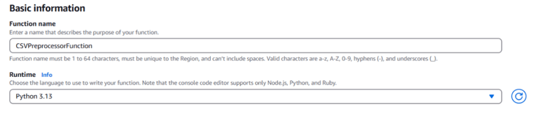 Let’s write a basic preprocessing Lambda function to clean and filter CSV files