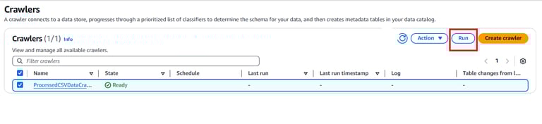 Run the Crawler to generate metadata tables in the Glue Data Catalog