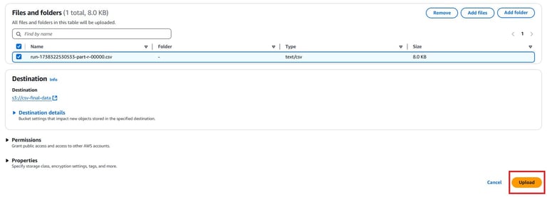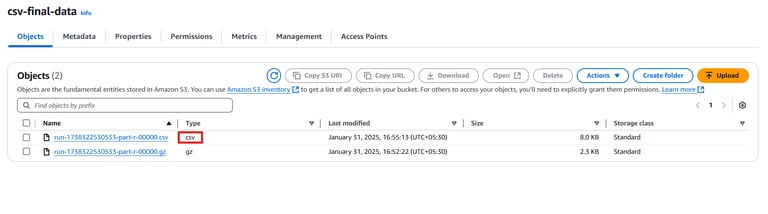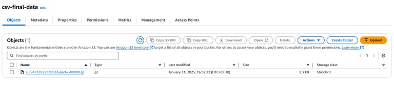 Confirm that the file now appears in the csv-final-data bucket with a .csv extension