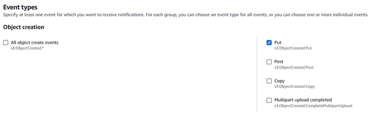 Now that our Lambda function is setup, we need to configure the raw data S3 bucket to automatically trigger the Lambda function whenever a new file is uploaded in the bucket.