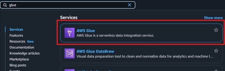 Now lets proceed with creating the AWS Glue Job ETL pipeline using Visual ETL. To do this—