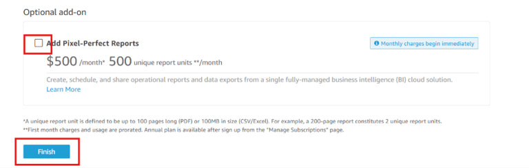 Uncheck the option- Add Pixel Perfect Reports and click on Finish.