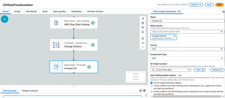 Enter the S3 path where the transformed CSV file should be stored (e.g., s3://csv-final-data/).